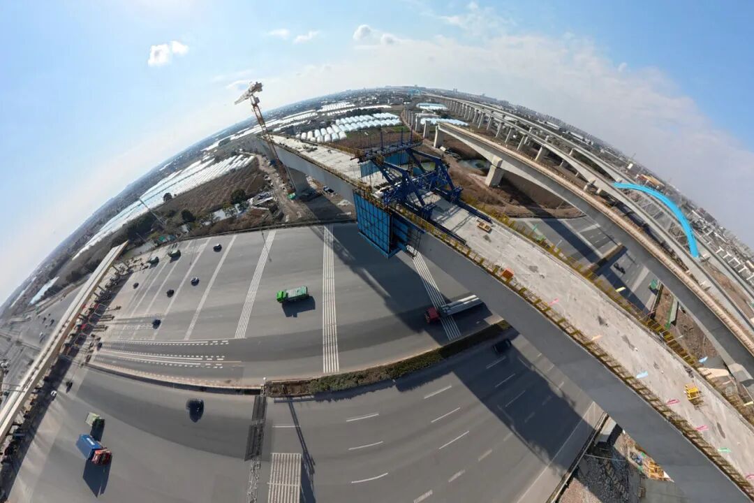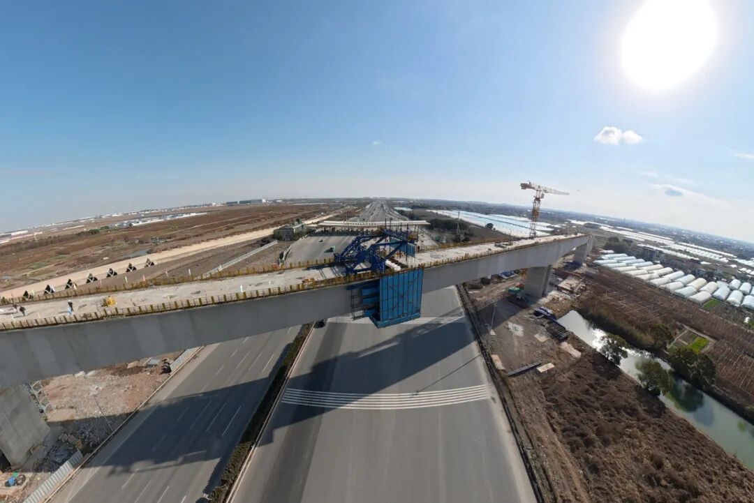 南汇支线9标跨S32申嘉湖高速163米连续梁顺利合龙